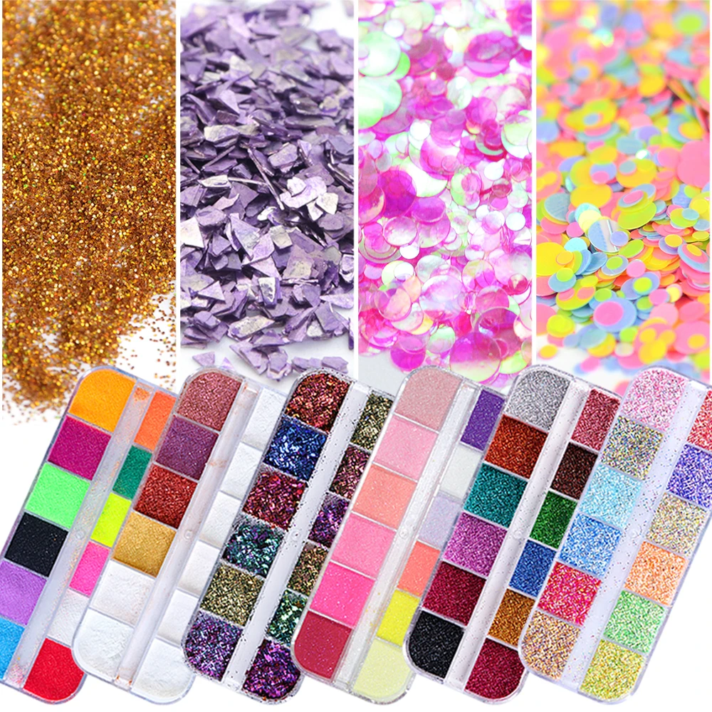 Luxury 12 Color Nail Glitter Sequins Paillette Mixed Size Shaped Mini Round Rhombus 3D Flakes Nail Art Tips Decorations Set LA109Earn 30% Cash Back, VALID UNTIL TOMORROW