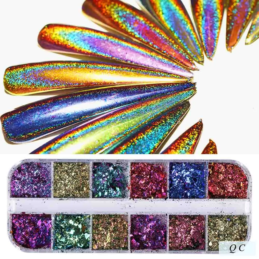 Related Product for Nail Art Glitter Powder Set Mix Color Chameleon Laser Paillette Mermaid Dust Candy Flakes Sequins P