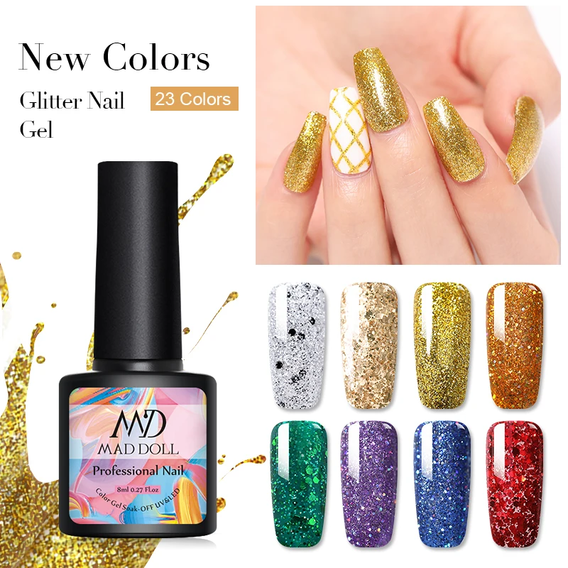 Special Chance for MAD DOLL 8ml Gel Nail Polish Glitter Shiny Sequins UV Soak Off Colorful Nail Art Varnish Long Lasti